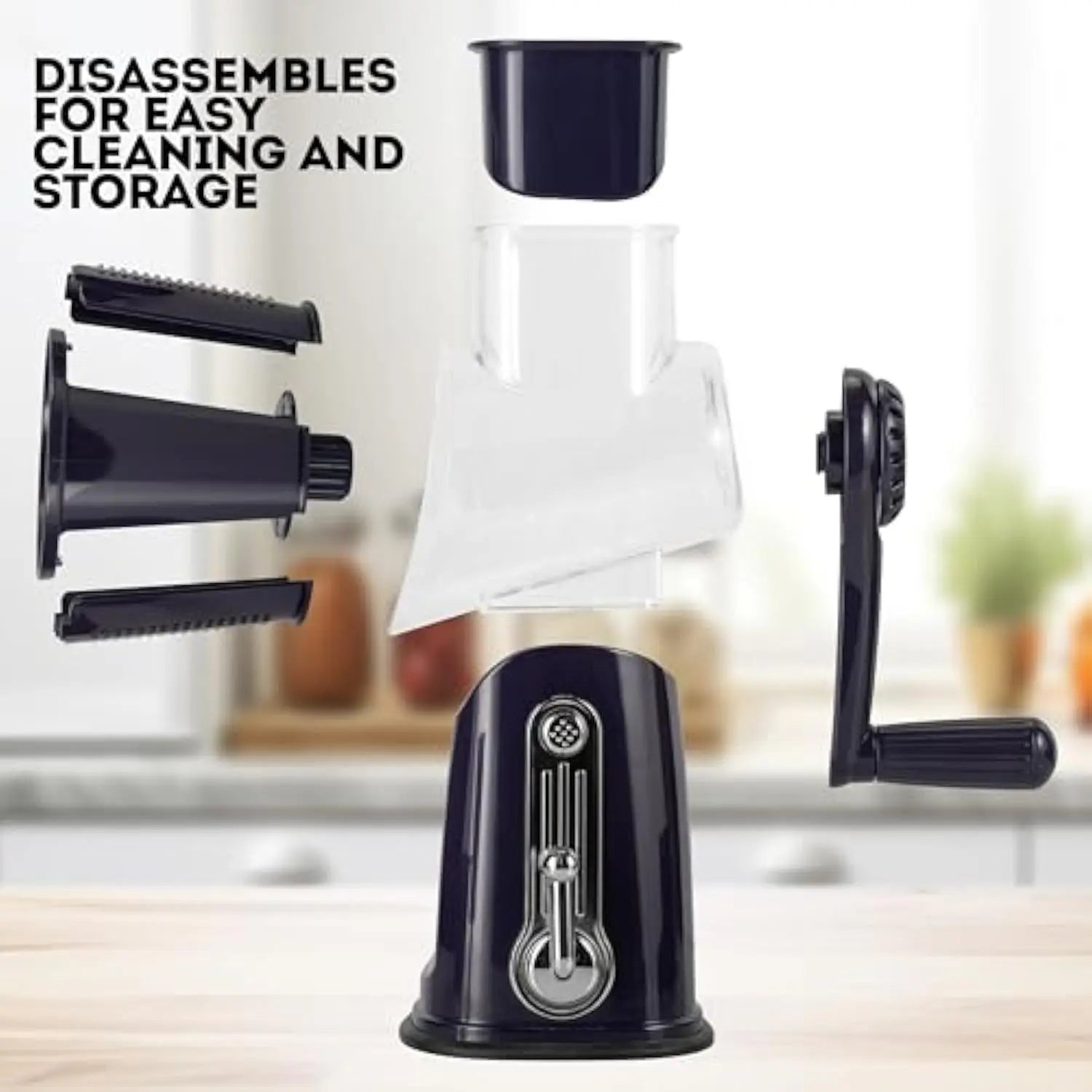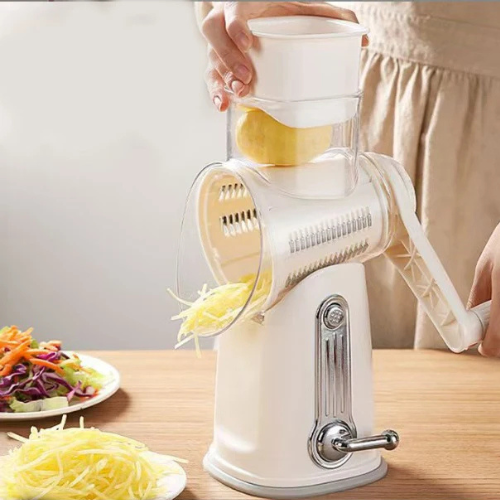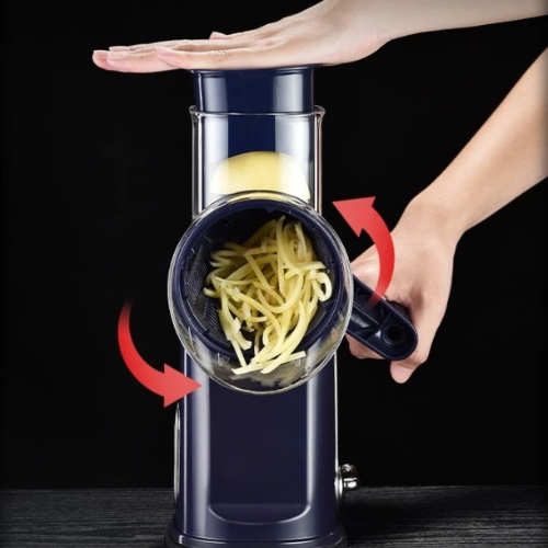 This rotary grater transforms manual prep into a fast, controlled motion that saves time and effort. The enclosed blade system prioritizes safety without sacrificing speed. Its suction base delivers stability you can trust, while interchangeable drums handle a wide range of foods. Cleanup is quick, storage is compact, and daily cooking becomes noticeably easier.
